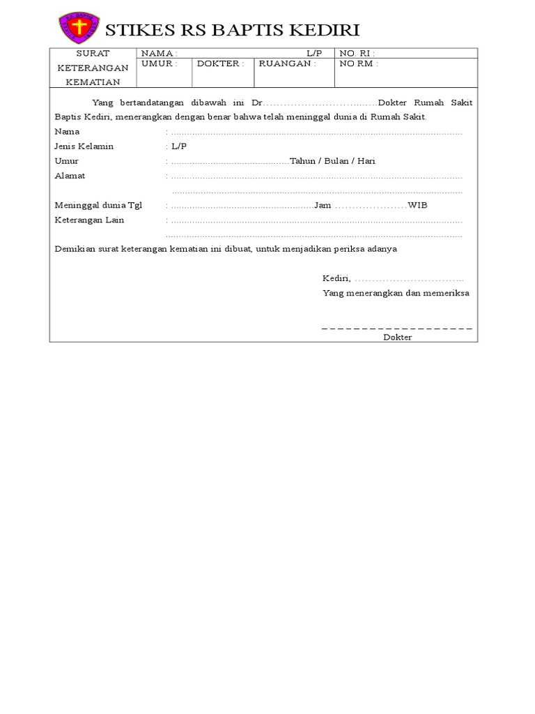 Contoh surat keterangan kematian dari rumah sakit. We did not find results for: Maybe you would like to learn more about one of these? Check spelling or type a new query.